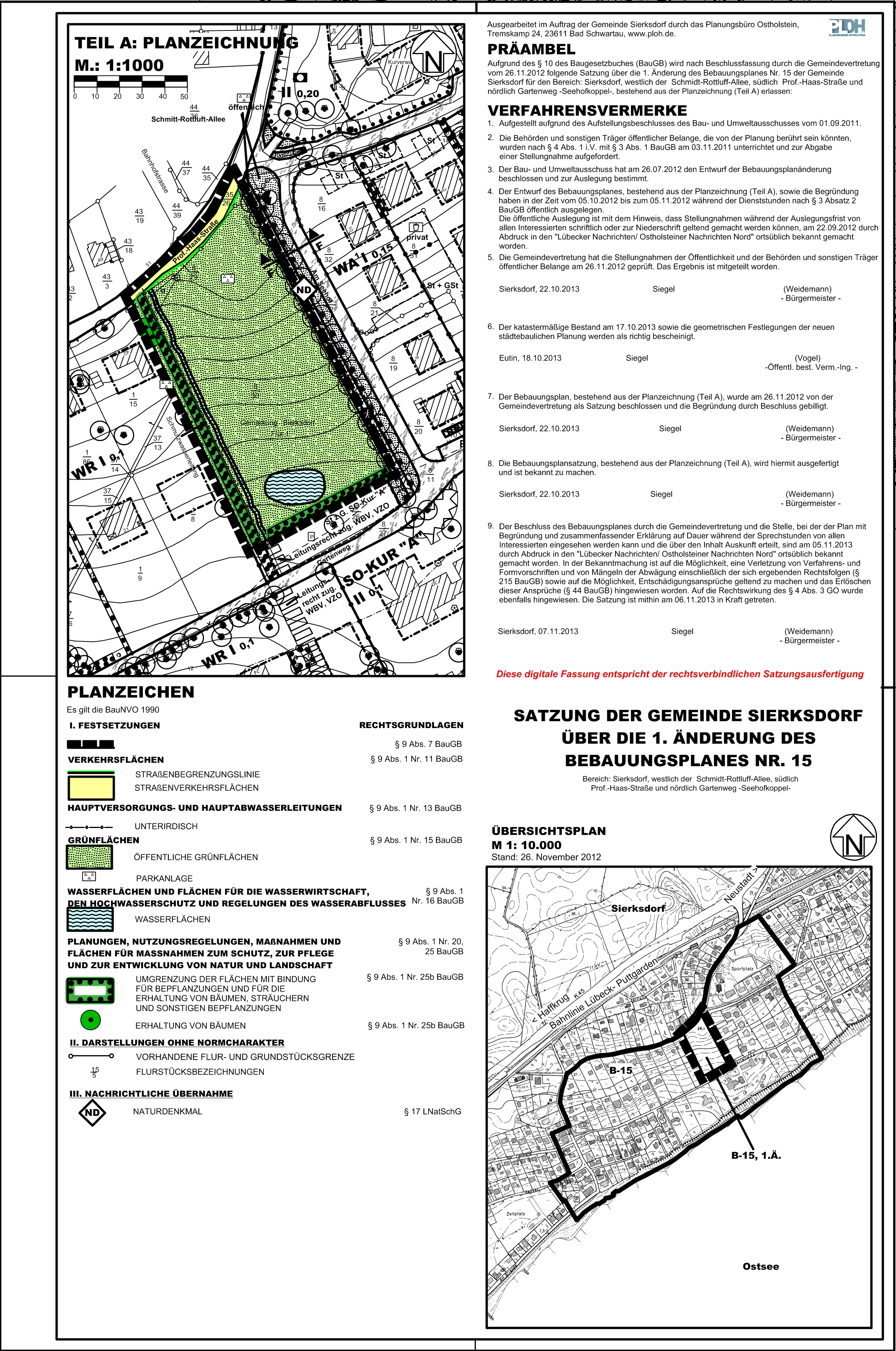Bebauungsplan 15 1.Änderung, Vermerk